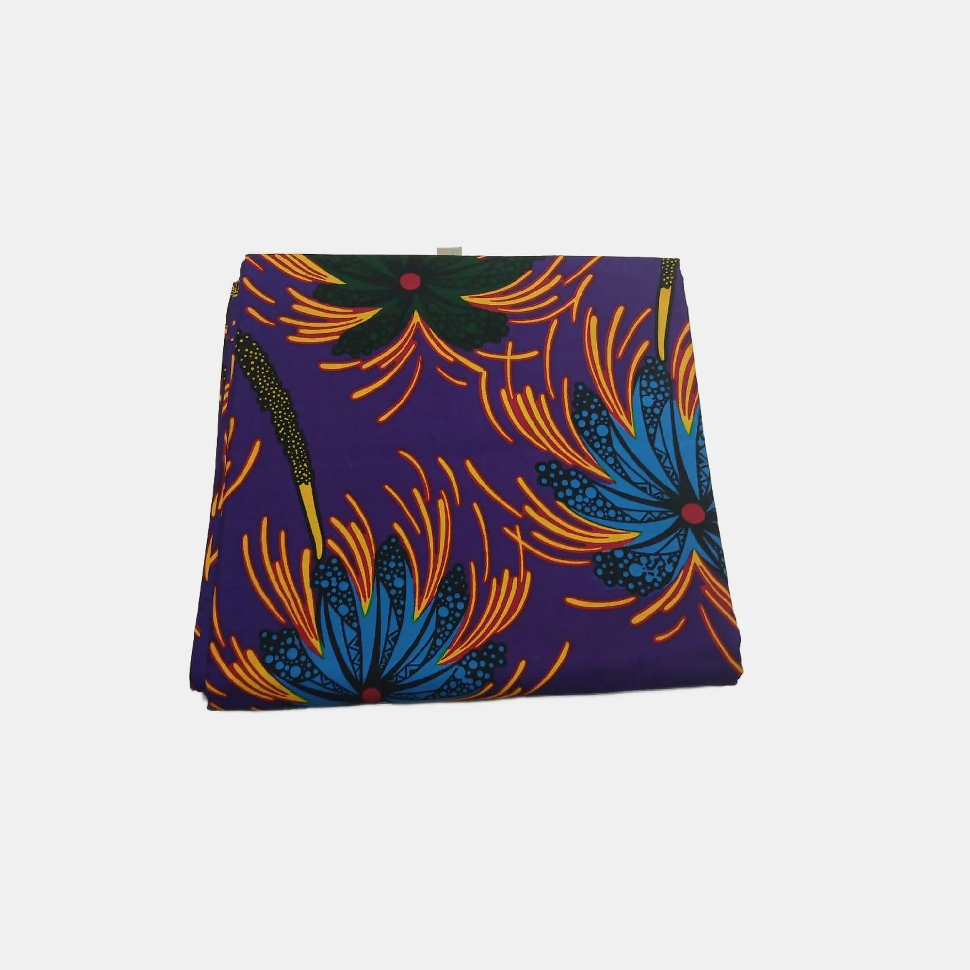Ankara Fabric: Step into a world of color and luxury with the “Royal Indigo Bloom” Classic Ankara. This is a premium textile made from 100% cotton, offering superior breathability and a soft hand feel that is perfect for year-round wear. The design is a celebration of deep, noble color, featuring a rich indigo-purple base that serves as the perfect canvas for the explosive ‘bloom’ pattern. Large, stylized floral motifs burst across the fabric in vivid hues of electric blue and vibrant yellow-orange, accented by deep green details, truly capturing the essence of a royal garden in full splendor. This 6-yard piece provides generous material for traditional African attire such as iro and buba, elaborate maxi skirts, or contemporary fashion statements like tailored blazers and structured dresses. The durability and intense color saturation characteristic of classic Ankara ensure your creations remain breathtaking through many washes. Bring the energy and majesty of the “Royal Indigo Bloom” to your next sewing project and create something truly unforgettable.